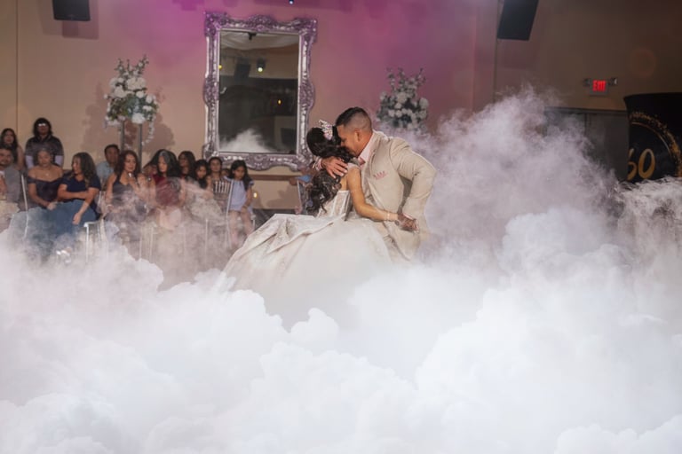 Dale un toque de encanto y sofisticación a tu evento con nuestro efecto especial de niebla baja, que crea la ilusión de bailar sobre las nubes.