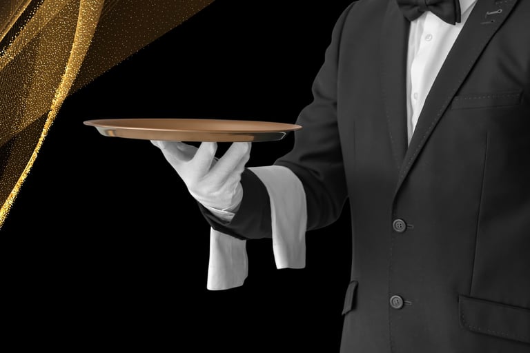 El salón de banquetes se distingue por contar con un equipo de meseros altamente capacitados, cuyo profesionalismo y elegancia contribuyen de manera esencial al éxito de cada evento. Su presentación impecable y su trato cordial reflejan el compromiso del salón con la excelencia y la atención al detalle.